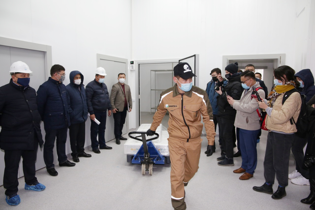 Today, Deputy Prime Minister of the Republic of Kazakhstan Yeraly Tugzhanov took part in the shipment of the first batch of the Kazakh vaccine QazVac (QazCovid-in), produced on the basis of the Scientific Research Institute for Biosafety Problems and got acquainted with the construction progress of a biopharmaceutical plant in the village of Gvardeisky, Kordai district, Zhambyl region.